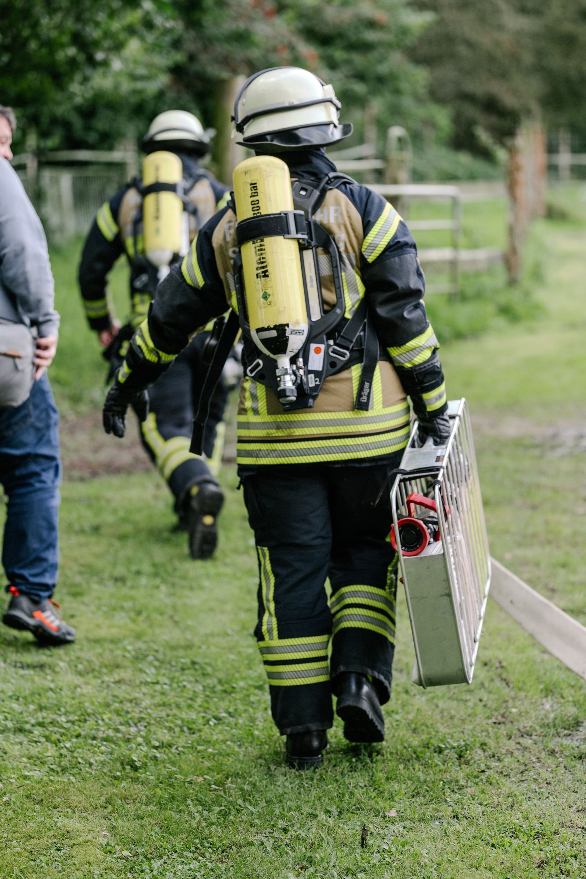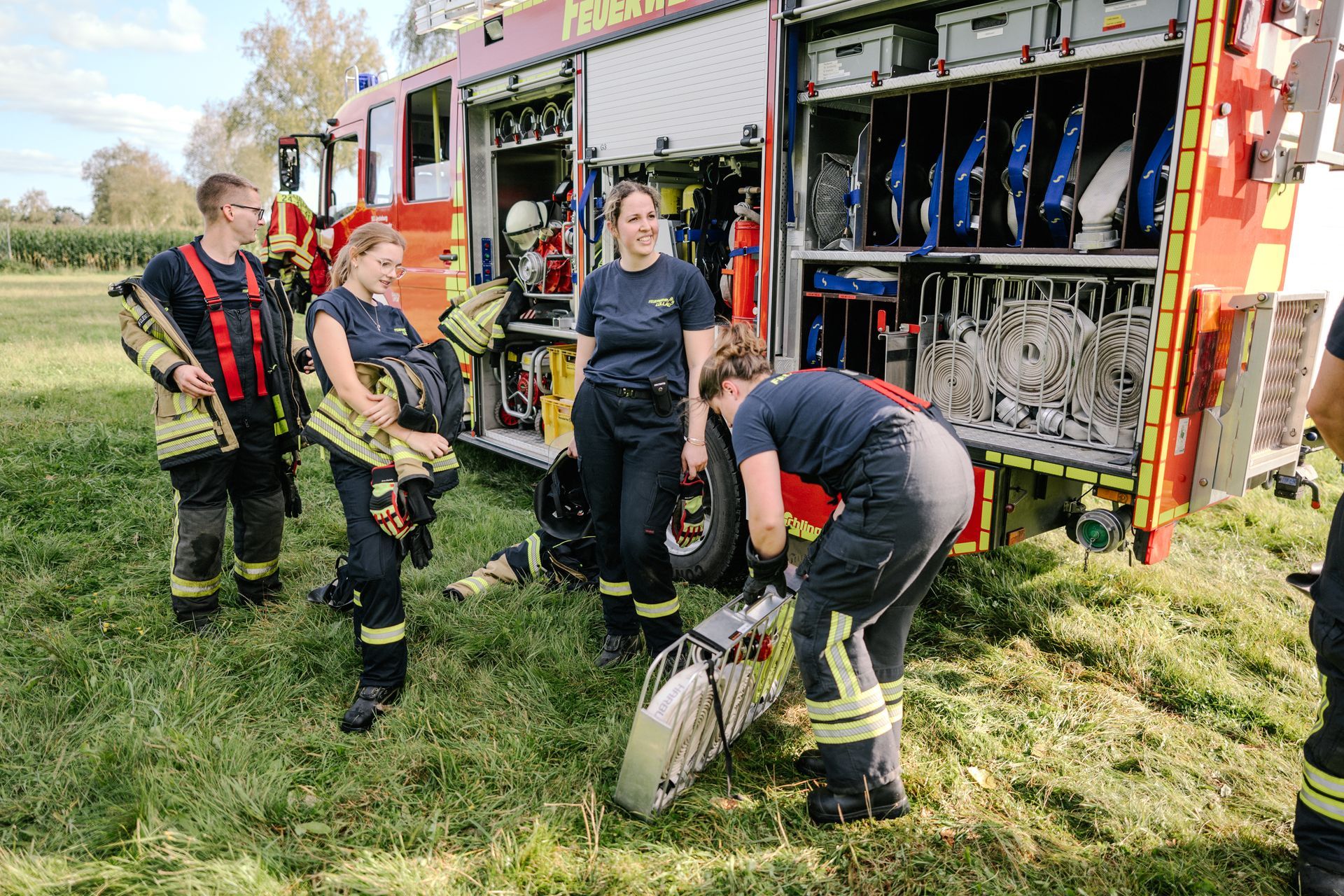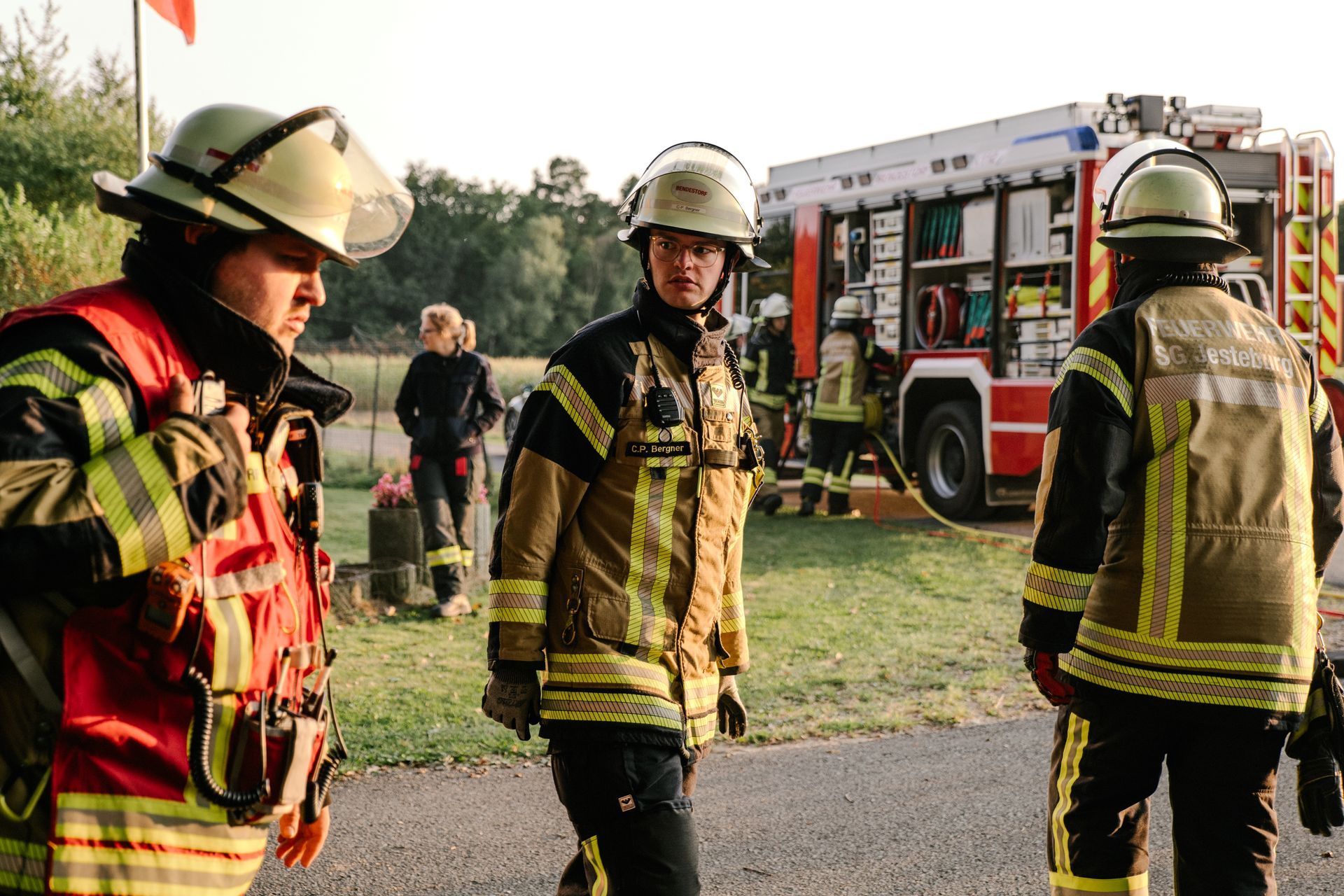 Am Samstag, den 14.9.24, war Bendestorf ein ganz besonders sicherer Ort. Die Feuerwehren aus Harmstorf, Jesteburg und Lüllau waren zu Gast. Dazu waren ab Mittag ein kleiner Parcours an Einzelübungen bzw. Stationen vorbereitet, die durch die Teilnehmer absolviert wurden. Die Stationen wurden durch die Samtgemeindeausbildungsleitung, die Gemeindebrandmeister und die Ortsbrandmeister Bendestorf besetzt. Jeder konnte in seiner Station die Dinge an die Teilnehmer weitergeben, die ihm am Herzen liegen. Dadurch war eine abwechslungsreiche Gestaltung möglich. Von einer Reanimation nach Elektrounfall ging es weiter zu einem Vegetationsbrand. Anschließend musste ein Gefahrstoffunfall nach der GAMS-Regel abgearbeitet werden. Danach wurde ein schneller Löschangriff mit offener Wasserentnahmestelle aufgebaut. Als nächstes galt es den Rettungsdienst bei einer Rettung aus Höhe zu unterstützen. Der Abschluss fand sich bei einer Tür- und Fensteröffnung. Die Koordination der eingesetzten Kräfte erfolgte über das ELW der Samtgemeinde. Die Einsatzkräfte wurden via Tablet alarmiert. Alle Rückmeldungen der Einsatzstellen sind aufgenommen und verarbeitet worden.