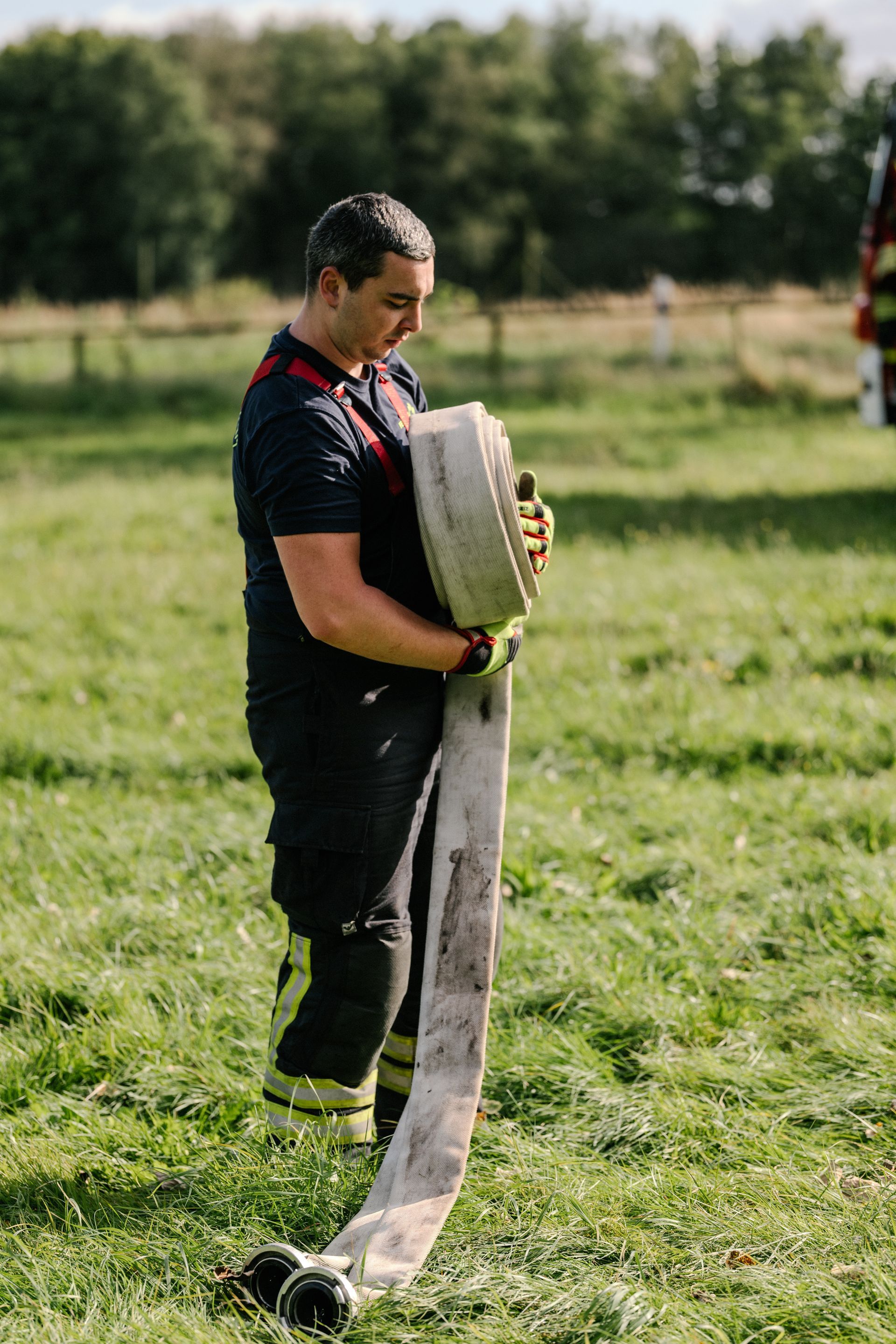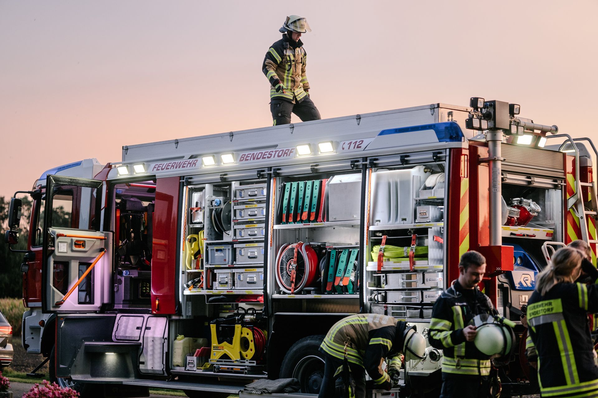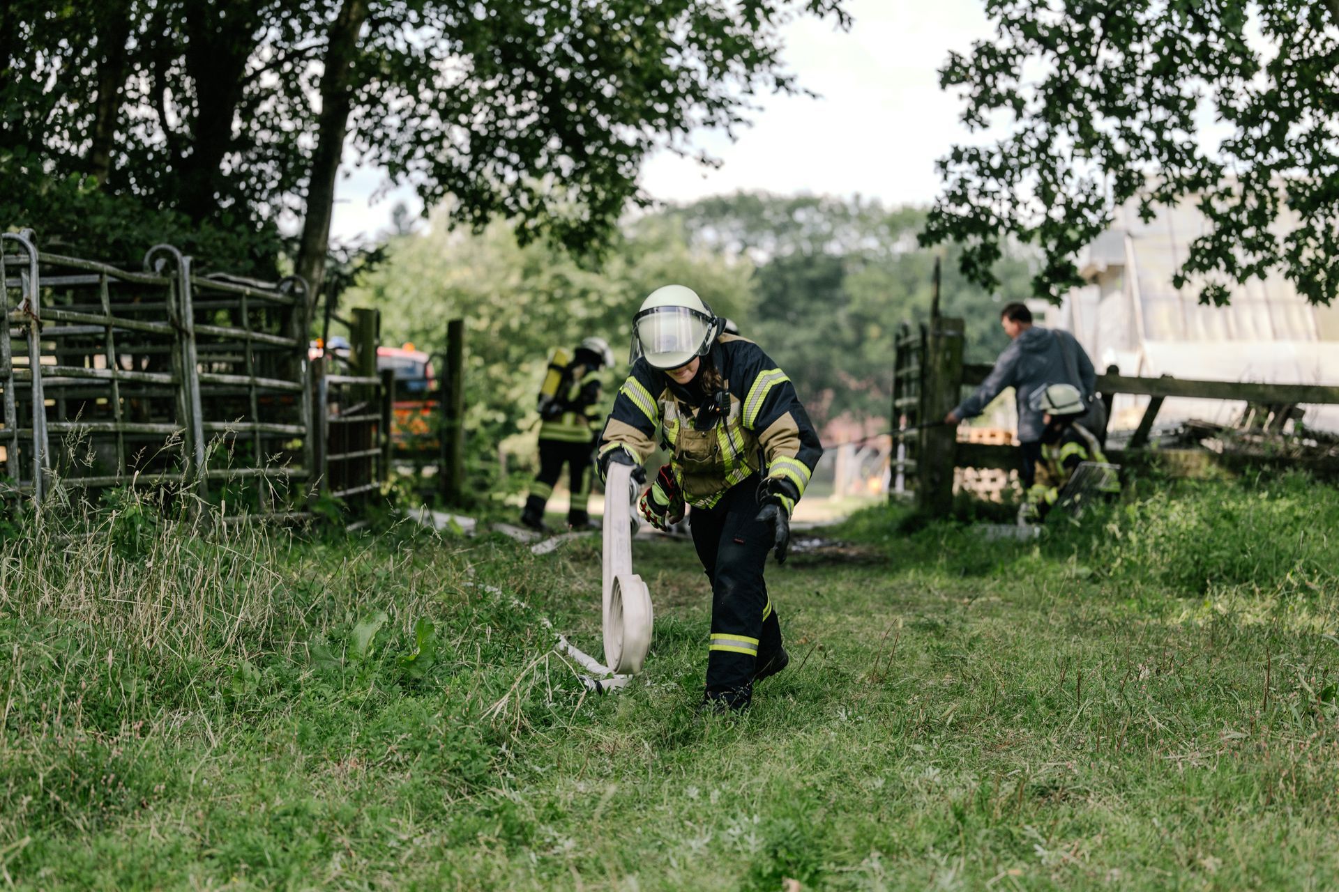 Am Samstag, den 14.9.24, war Bendestorf ein ganz besonders sicherer Ort. Die Feuerwehren aus Harmstorf, Jesteburg und Lüllau waren zu Gast. Dazu waren ab Mittag ein kleiner Parcours an Einzelübungen bzw. Stationen vorbereitet, die durch die Teilnehmer absolviert wurden. Die Stationen wurden durch die Samtgemeindeausbildungsleitung, die Gemeindebrandmeister und die Ortsbrandmeister Bendestorf besetzt. Jeder konnte in seiner Station die Dinge an die Teilnehmer weitergeben, die ihm am Herzen liegen. Dadurch war eine abwechslungsreiche Gestaltung möglich. Von einer Reanimation nach Elektrounfall ging es weiter zu einem Vegetationsbrand. Anschließend musste ein Gefahrstoffunfall nach der GAMS-Regel abgearbeitet werden. Danach wurde ein schneller Löschangriff mit offener Wasserentnahmestelle aufgebaut. Als nächstes galt es den Rettungsdienst bei einer Rettung aus Höhe zu unterstützen. Der Abschluss fand sich bei einer Tür- und Fensteröffnung. Die Koordination der eingesetzten Kräfte erfolgte über das ELW der Samtgemeinde. Die Einsatzkräfte wurden via Tablet alarmiert. Alle Rückmeldungen der Einsatzstellen sind aufgenommen und verarbeitet worden.