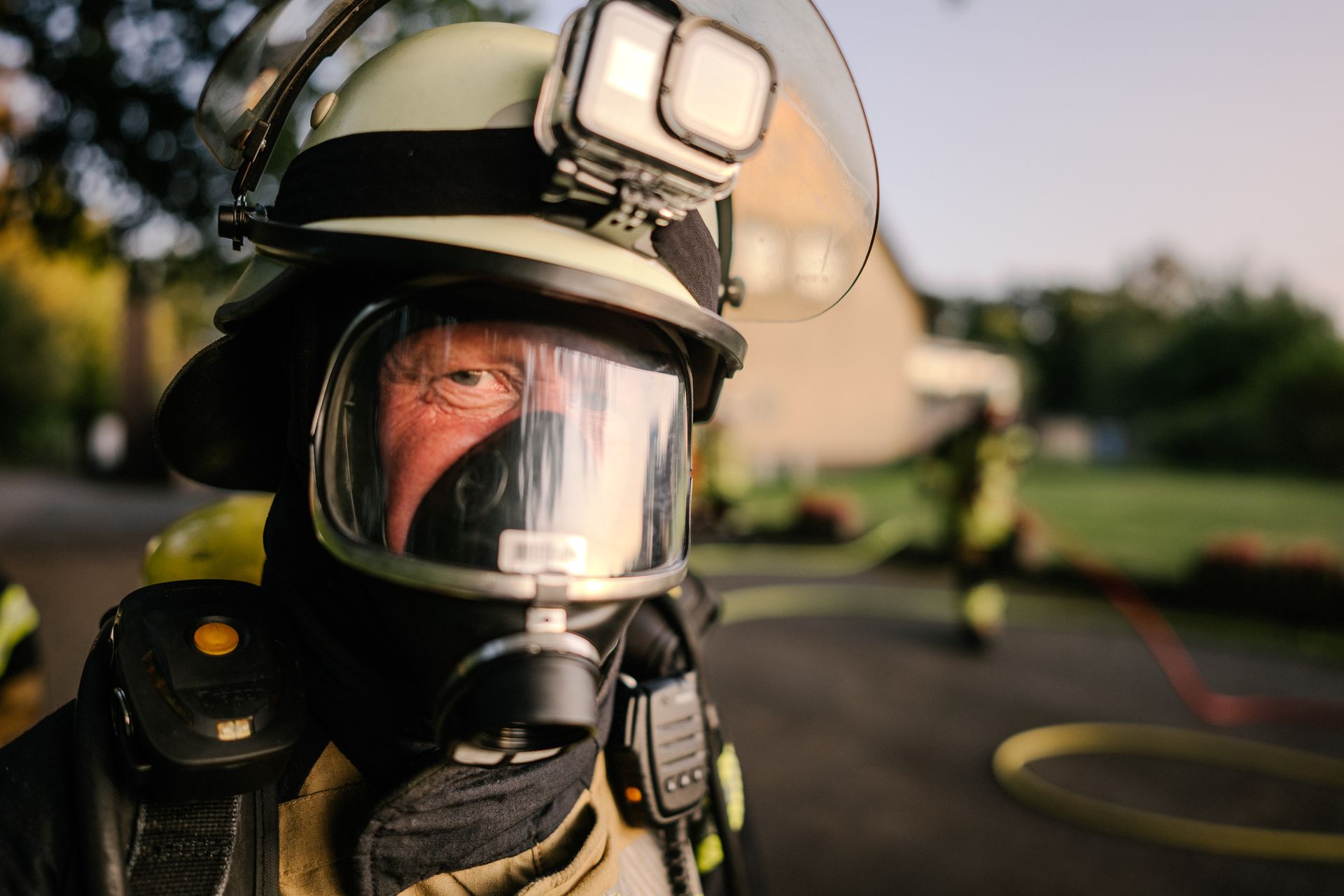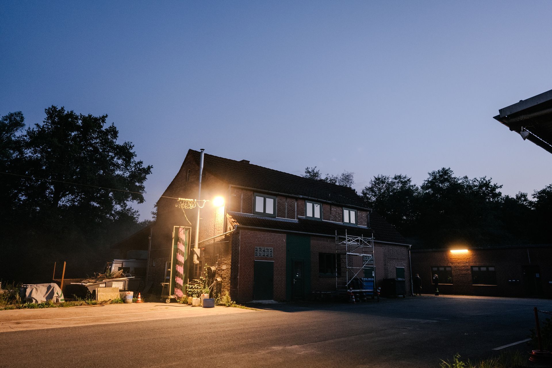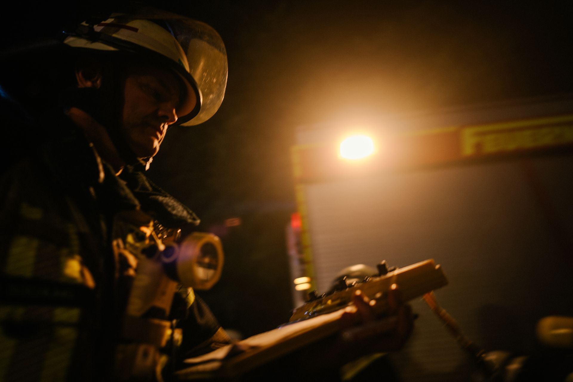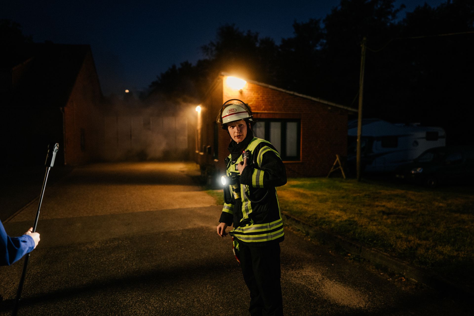 Für die Abschlussübung ging es nach Harmstorf. Dort kam es nach Trennschleifarbeiten zu einem Feuer in einer Werkstatt. Nach ersten Löschversuchen wurde ein Mitarbeiter vermisst. Im Verlauf stellte sich heraus, dass durch fehlenden baulichen Brandschutz eine Rauchausbreitung in die darüberliegende Wohnung stattgefunden hat. Dort wurden zwei Personen vermisst. Auch dieses Szenario konnte unter Leitung des stellvertretenden Gemeindebrandmeisters erfolgreich bearbeitet werden. Hier waren eine gute Ordnung des Raumes, eine Umfassende Erkundung, sowie eine frühzeitige Abschnittsbildung Schlüssel zum Erfolg.