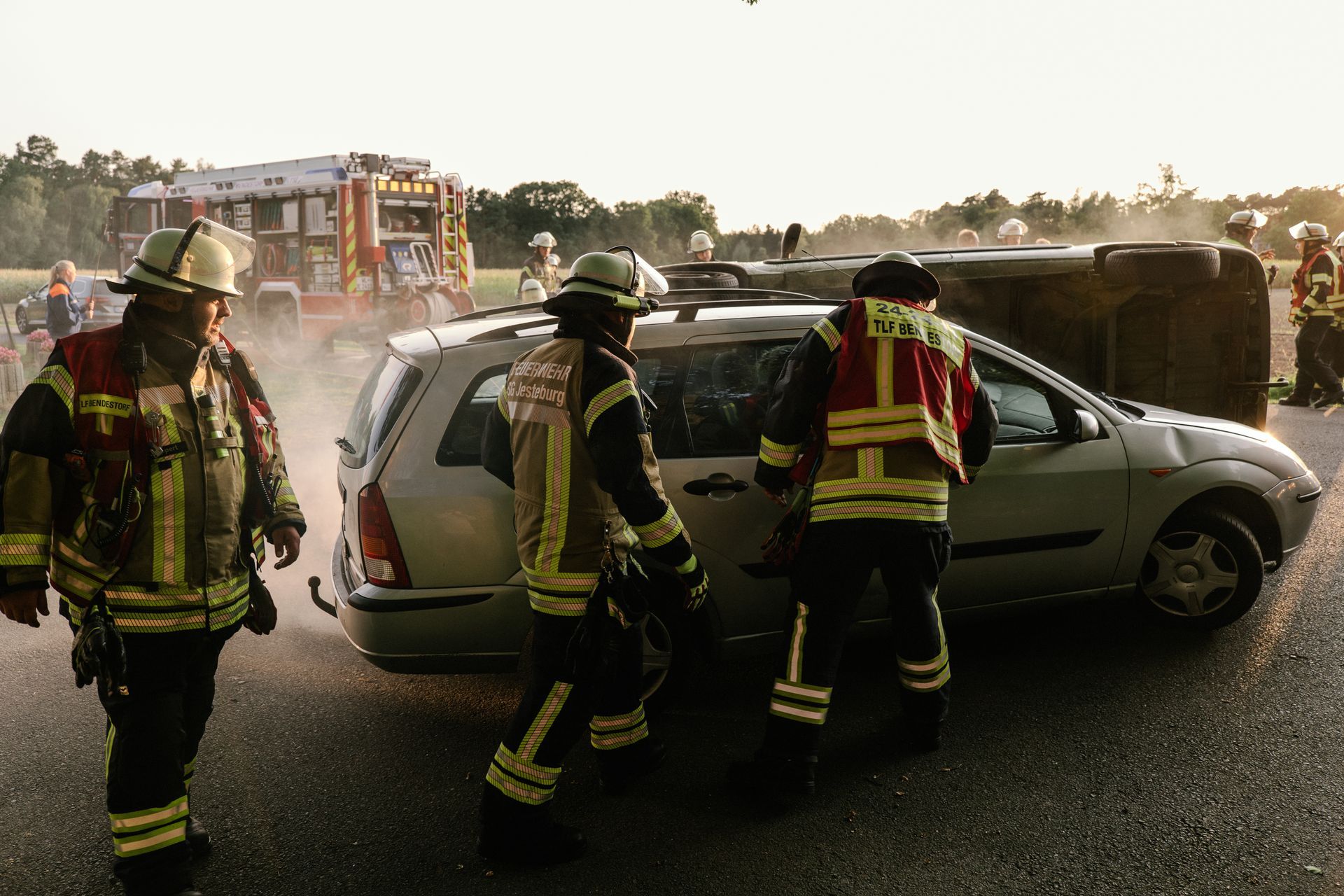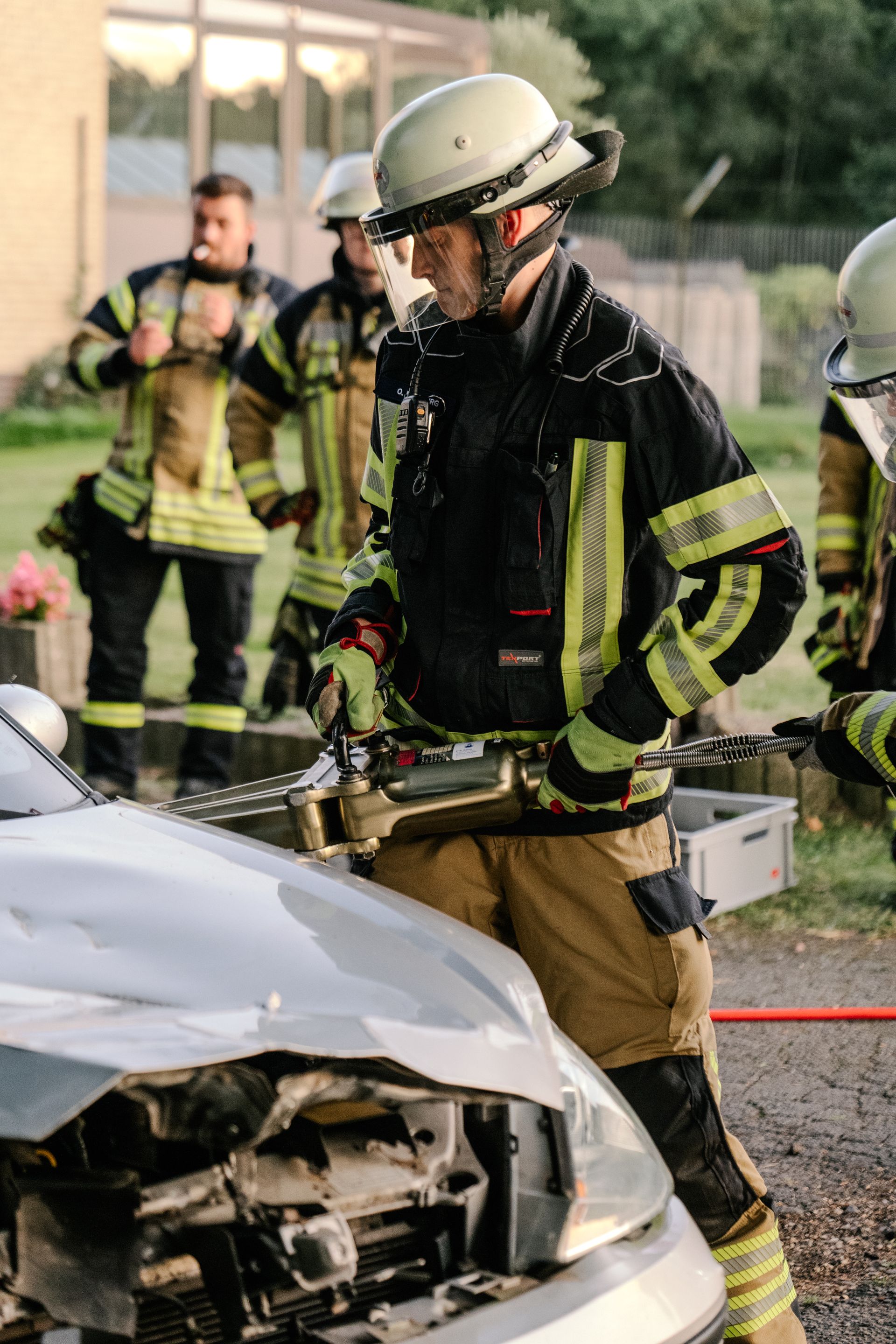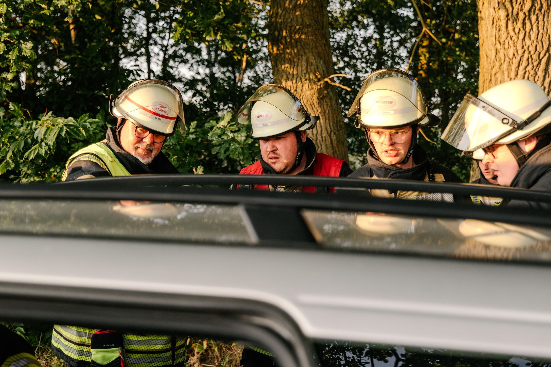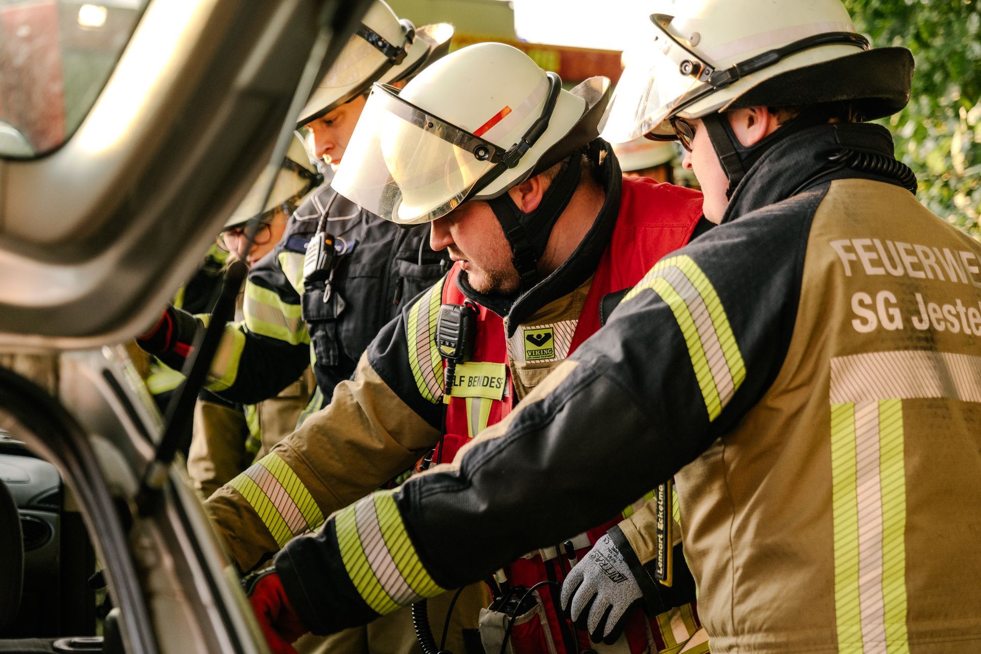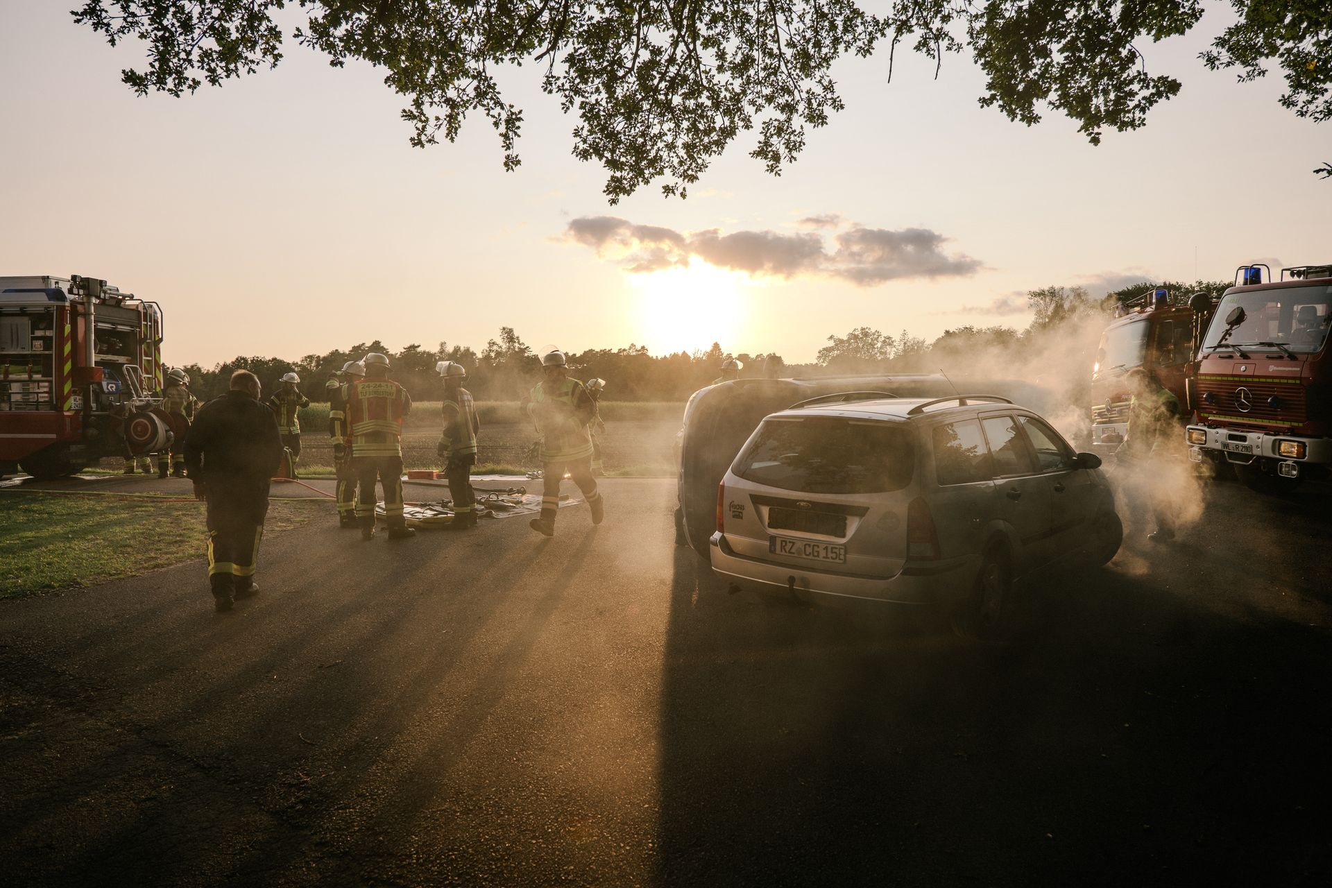 Nachdem diese Grundlagen für die Mannschaft durchgeführt waren, gab es eine Stärkung und die Führung wurde mehr gefordert. Nach einem Verkehrsunfall zweier PKW befand sich einer in Seitenlage. Vier Personen waren verletzt. Neben der technischen Rettung war die Ordnung des Raumes zentrales Element der Übung. Unter Leitung des Gemeindebrandmeisters konnte auch diese Übung erfolgreich absolviert werden. Im Anschluss bestand noch die Möglichkeit die PKW unter Anleitung der eingesetzten Gruppenführer weiter fachmännisch zu zerlegen.