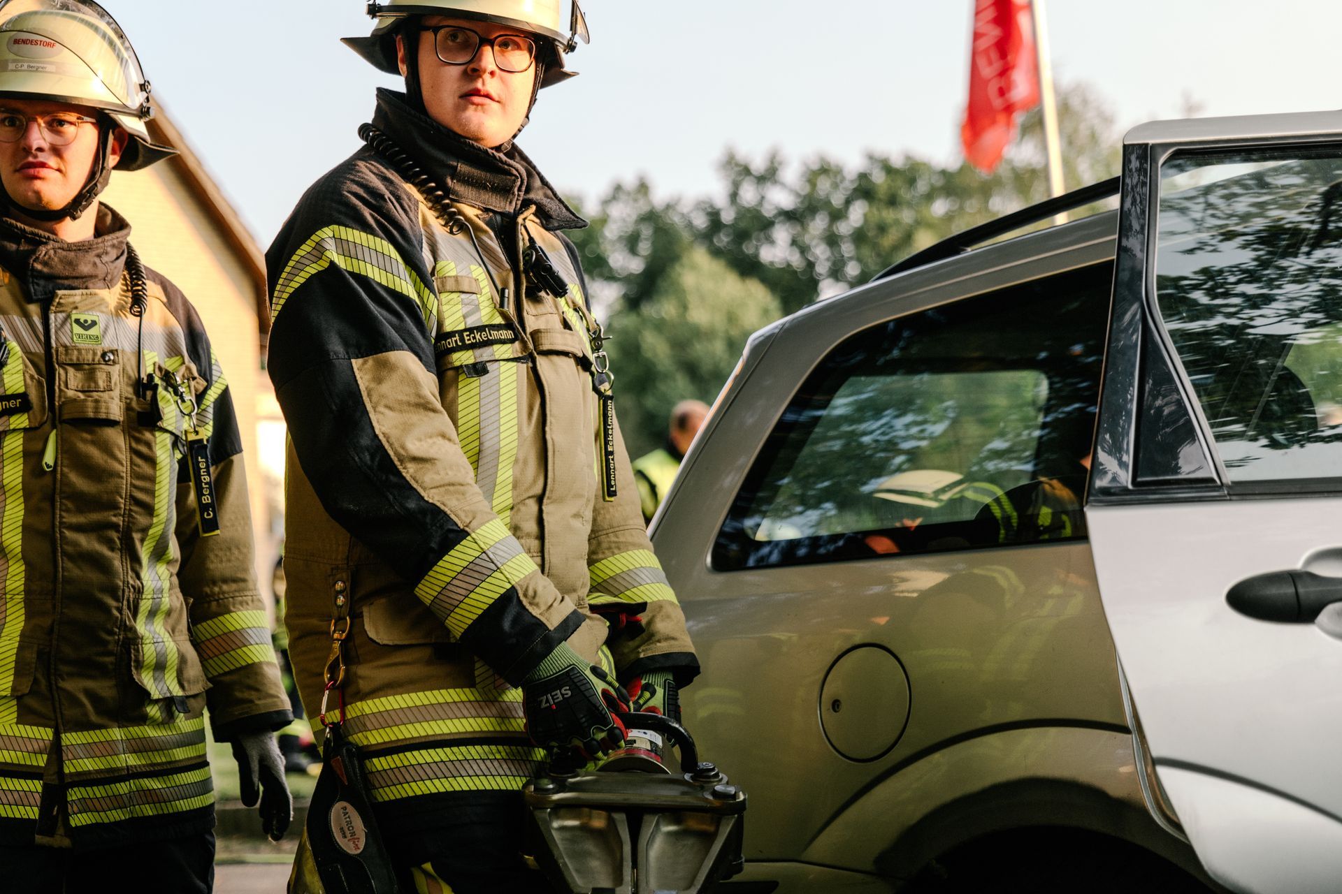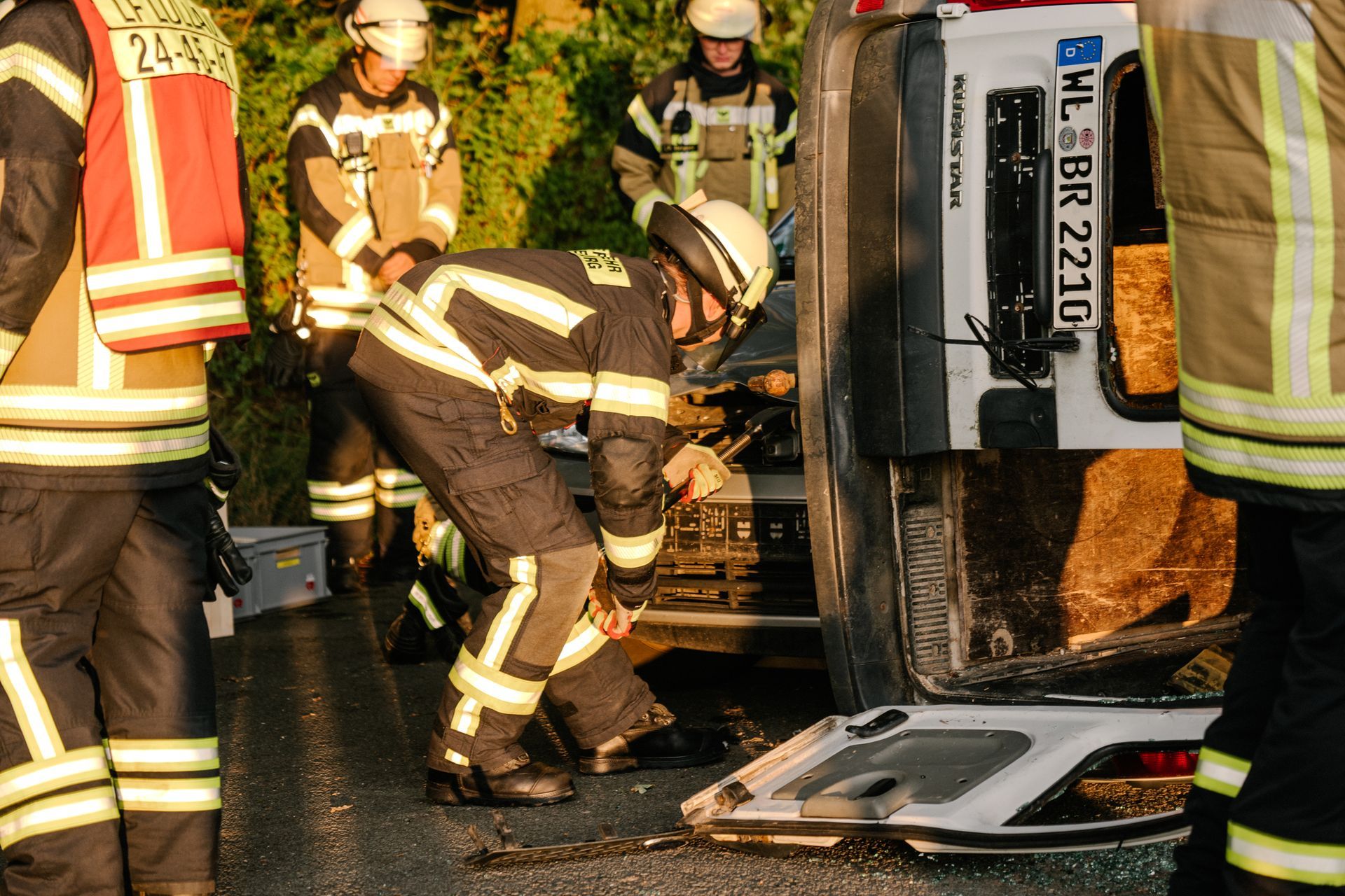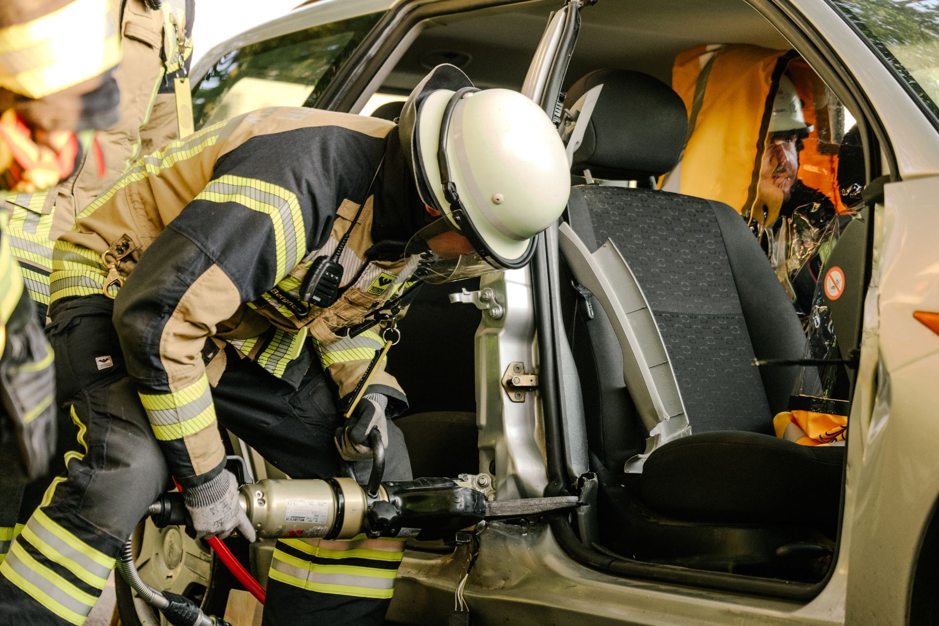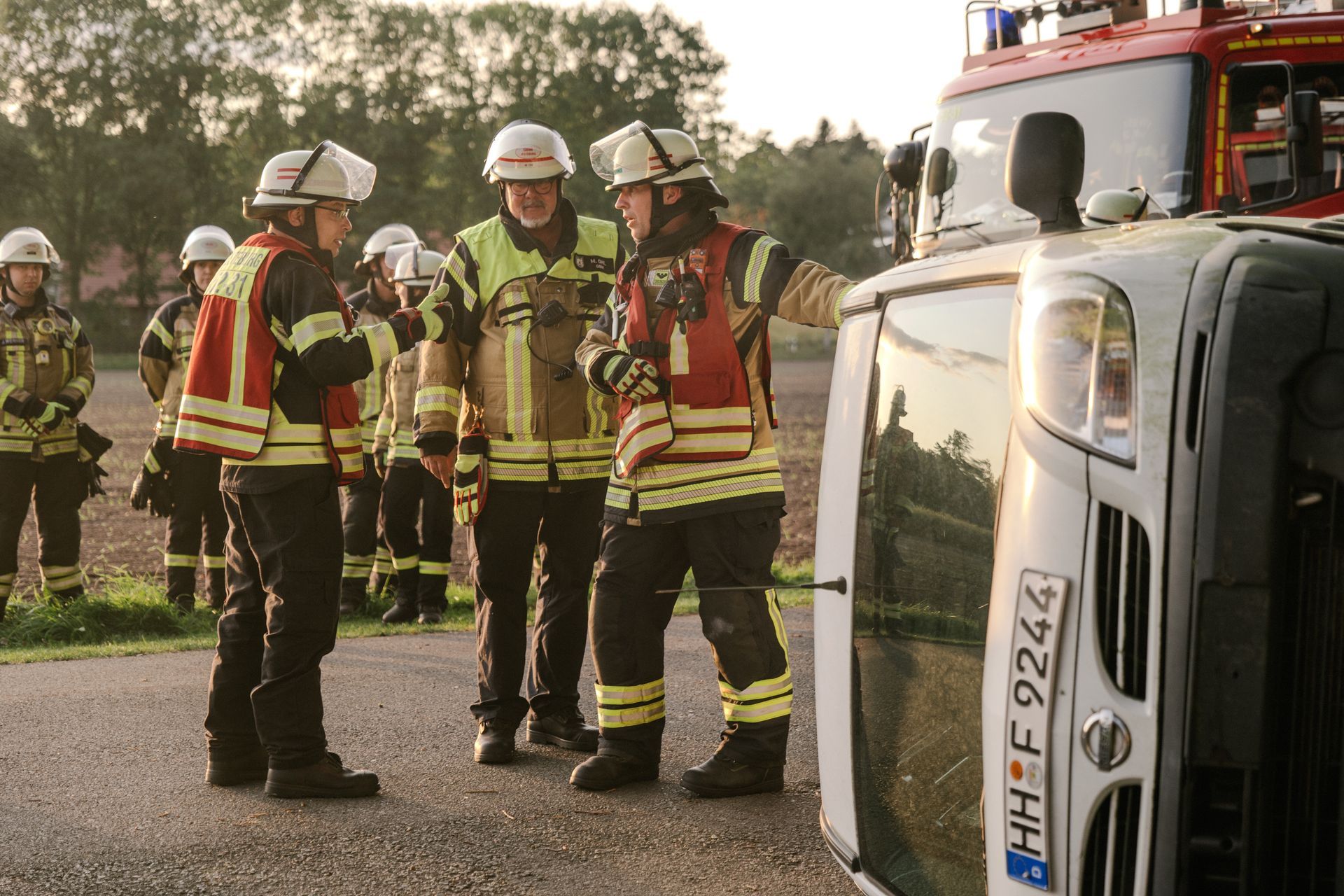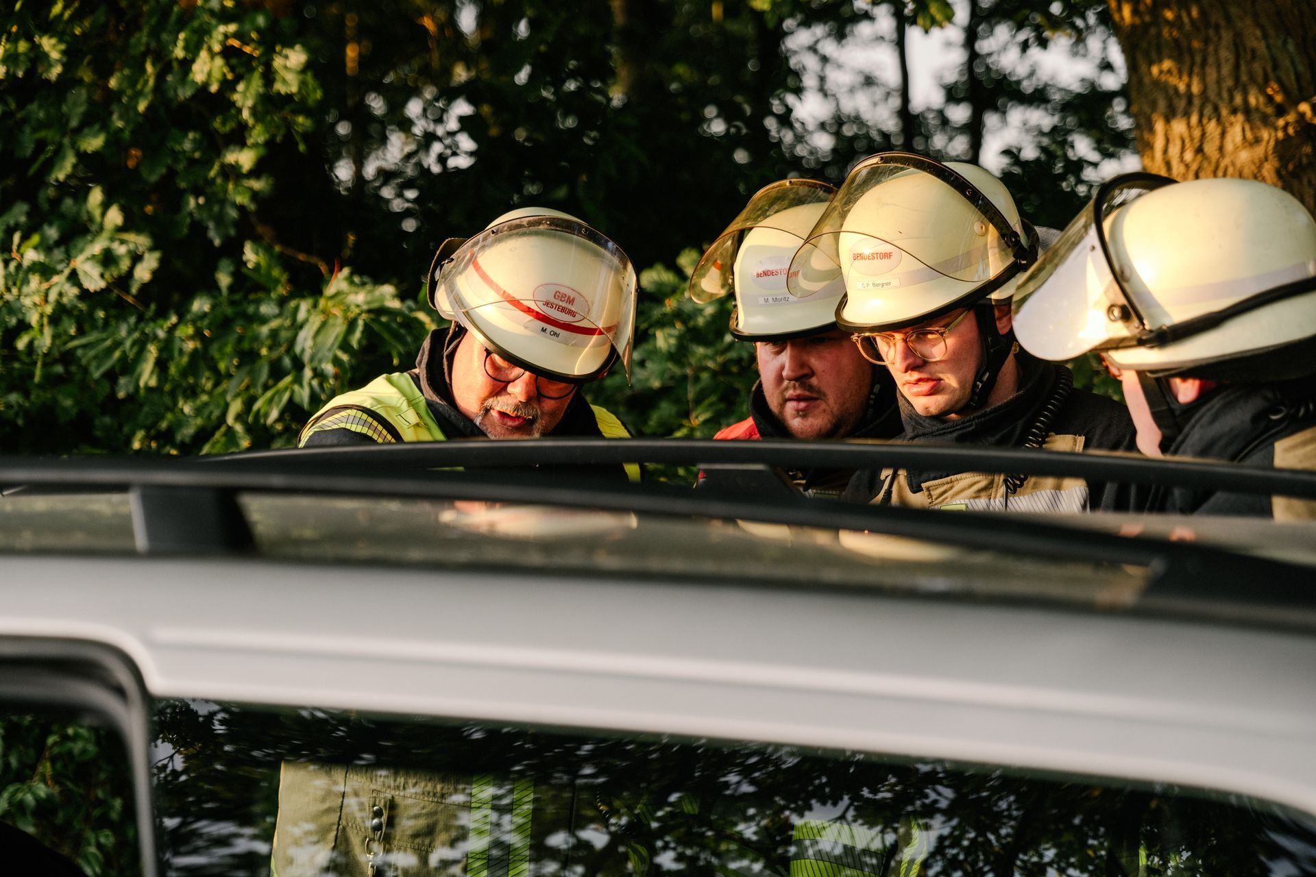 Nachdem diese Grundlagen für die Mannschaft durchgeführt waren, gab es eine Stärkung und die Führung wurde mehr gefordert. Nach einem Verkehrsunfall zweier PKW befand sich einer in Seitenlage. Vier Personen waren verletzt. Neben der technischen Rettung war die Ordnung des Raumes zentrales Element der Übung. Unter Leitung des Gemeindebrandmeisters konnte auch diese Übung erfolgreich absolviert werden. Im Anschluss bestand noch die Möglichkeit die PKW unter Anleitung der eingesetzten Gruppenführer weiter fachmännisch zu zerlegen.