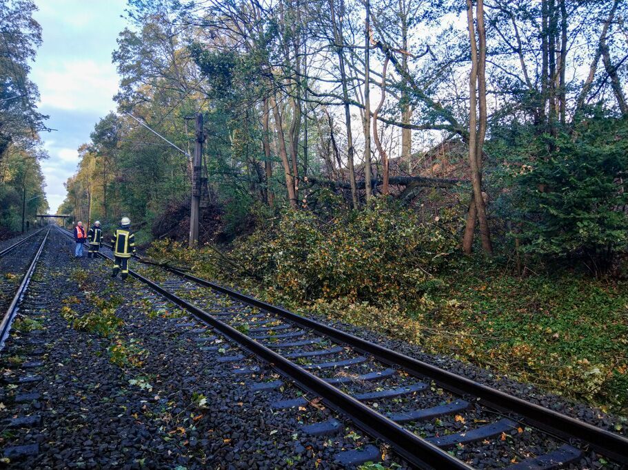 Die Feuerwehr aus Jesteburg wurde ebenfalls zu einem Streckenabschnitt der Bahn alarmiert. Viele Bäume vom Streckenrand sind auf die Gleisanlage gestürzt und Blockierten die Strecke. Hierbei geriet ein Baum in der Oberleitung in Brand. Des Weiteren stürzte auch in Jesteburg ein Baum auf ein Haus.