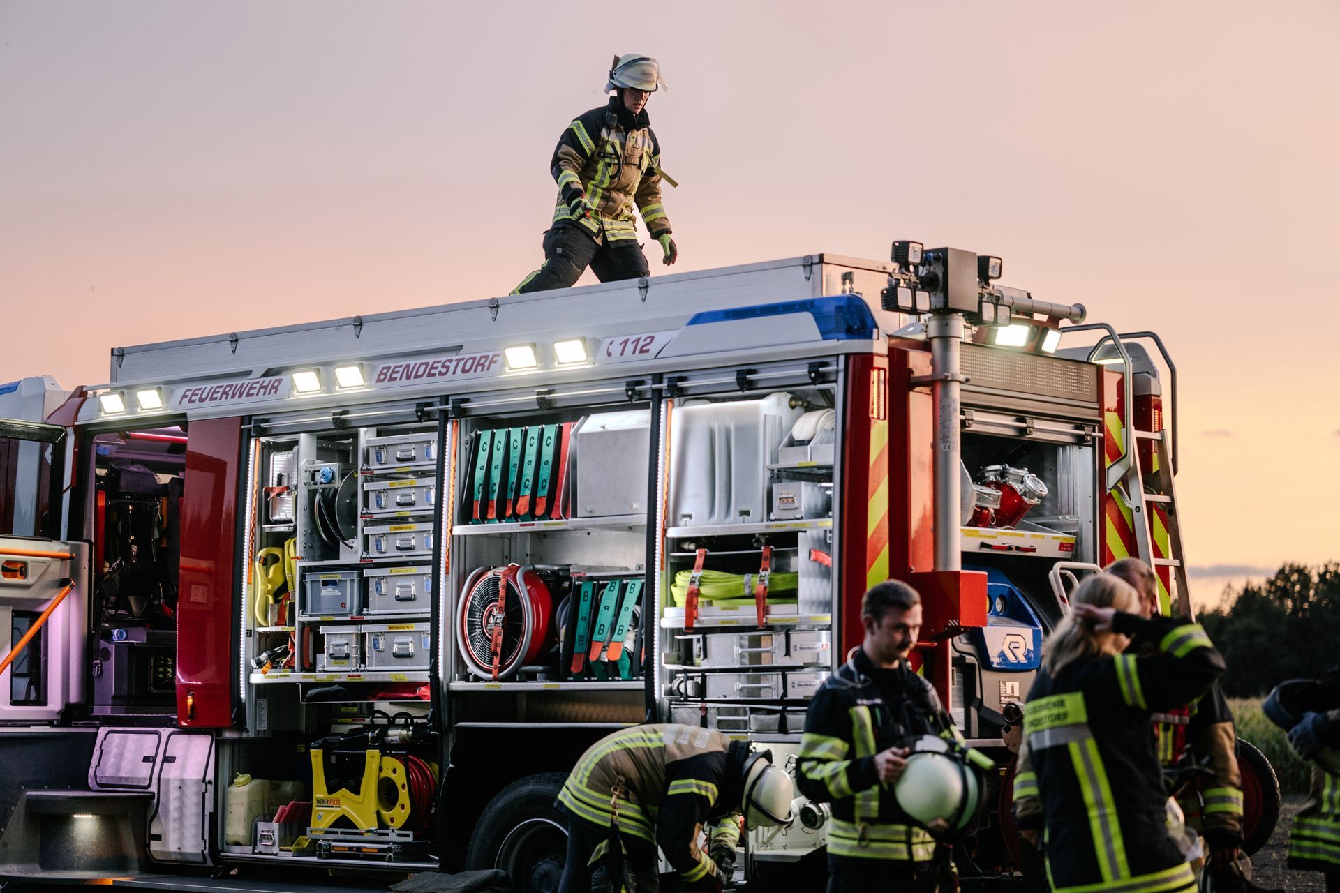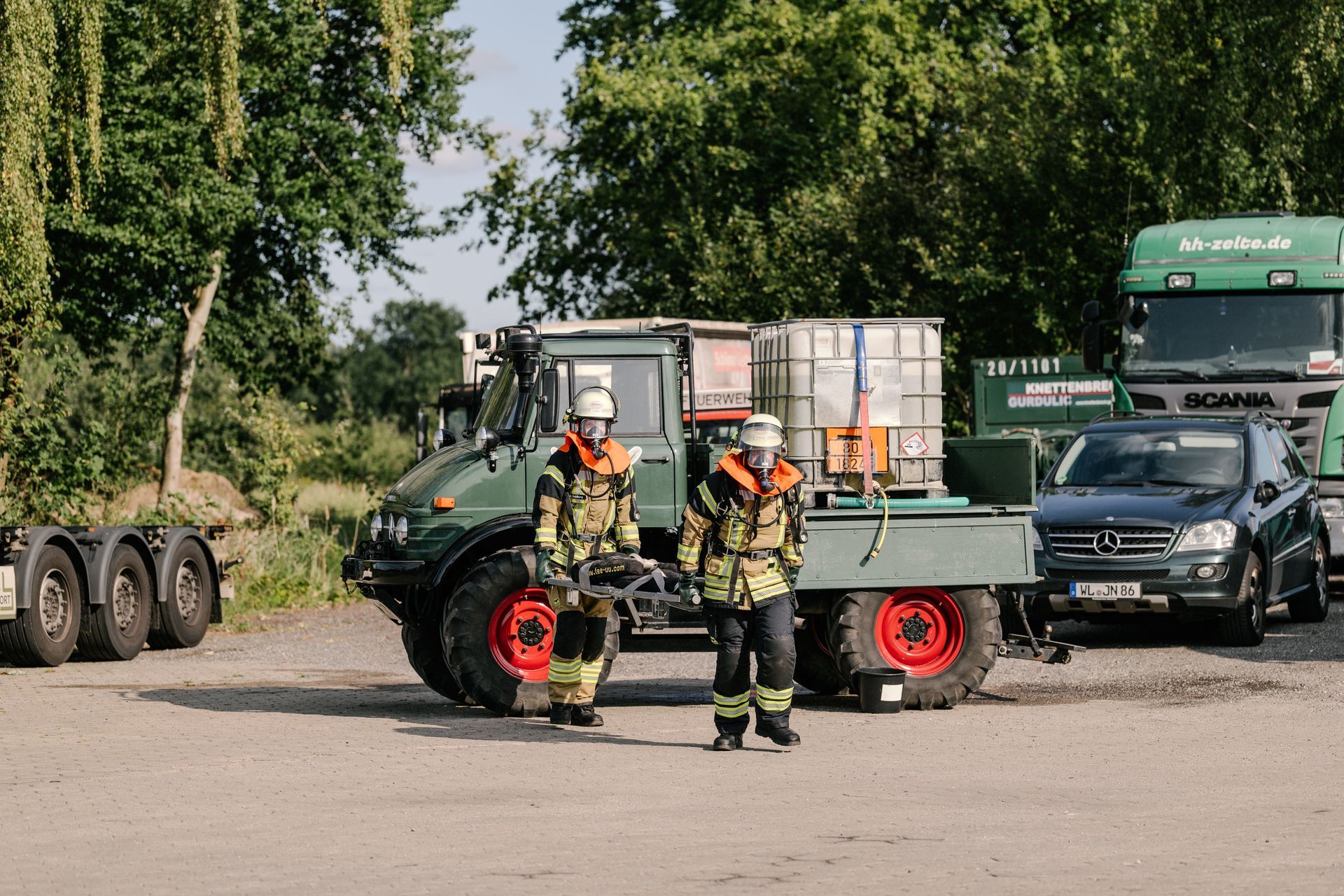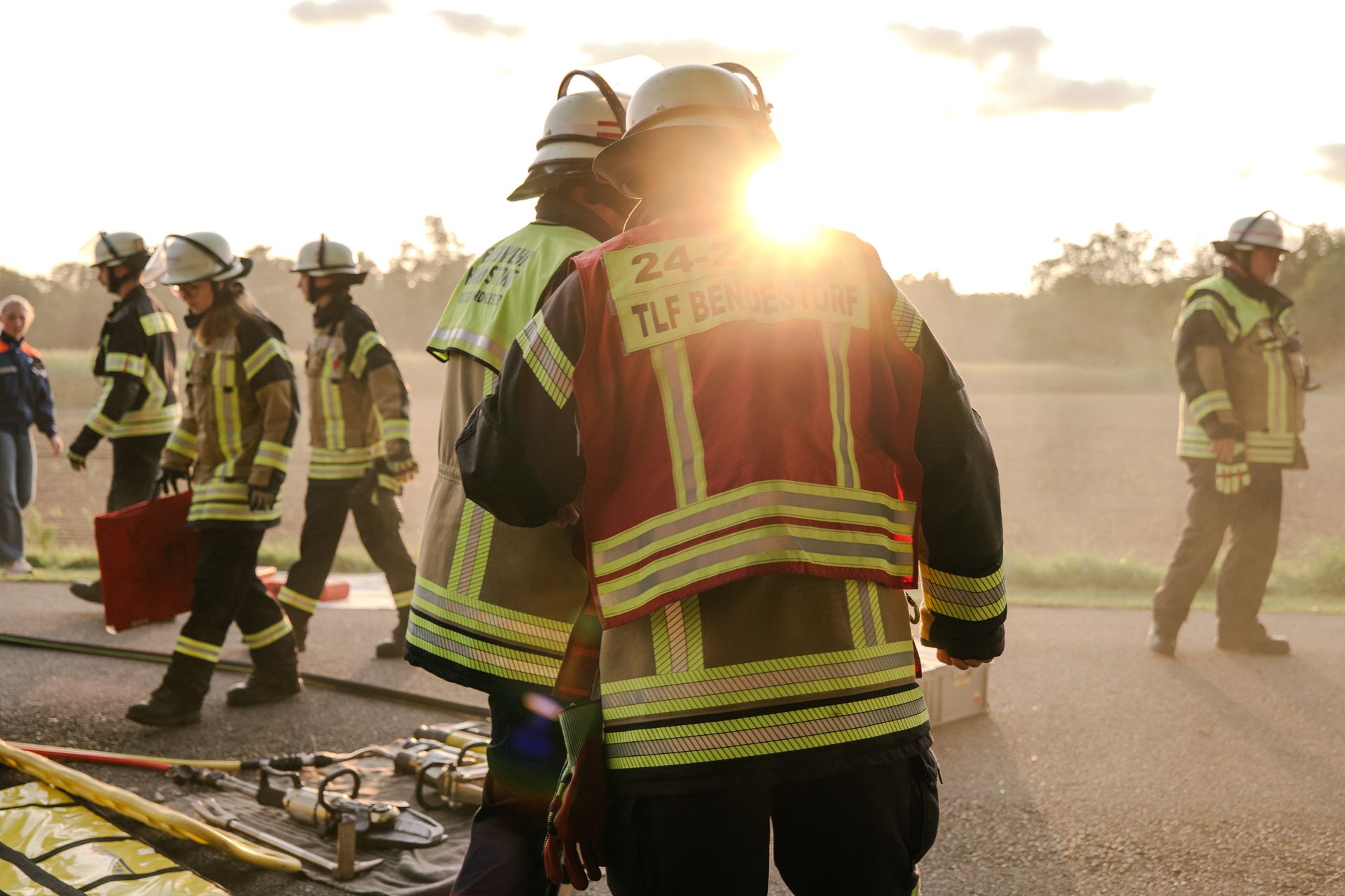 Am Samstag, den 14.9.24, war Bendestorf ein ganz besonders sicherer Ort. Die Feuerwehren aus Harmstorf, Jesteburg und Lüllau waren zu Gast. Dazu waren ab Mittag ein kleiner Parcours an Einzelübungen bzw. Stationen vorbereitet, die durch die Teilnehmer absolviert wurden. Die Stationen wurden durch die Samtgemeindeausbildungsleitung, die Gemeindebrandmeister und die Ortsbrandmeister Bendestorf besetzt. Jeder konnte in seiner Station die Dinge an die Teilnehmer weitergeben, die ihm am Herzen liegen. Dadurch war eine abwechslungsreiche Gestaltung möglich. Von einer Reanimation nach Elektrounfall ging es weiter zu einem Vegetationsbrand. Anschließend musste ein Gefahrstoffunfall nach der GAMS-Regel abgearbeitet werden. Danach wurde ein schneller Löschangriff mit offener Wasserentnahmestelle aufgebaut. Als nächstes galt es den Rettungsdienst bei einer Rettung aus Höhe zu unterstützen. Der Abschluss fand sich bei einer Tür- und Fensteröffnung. Die Koordination der eingesetzten Kräfte erfolgte über das ELW der Samtgemeinde. Die Einsatzkräfte wurden via Tablet alarmiert. Alle Rückmeldungen der Einsatzstellen sind aufgenommen und verarbeitet worden.