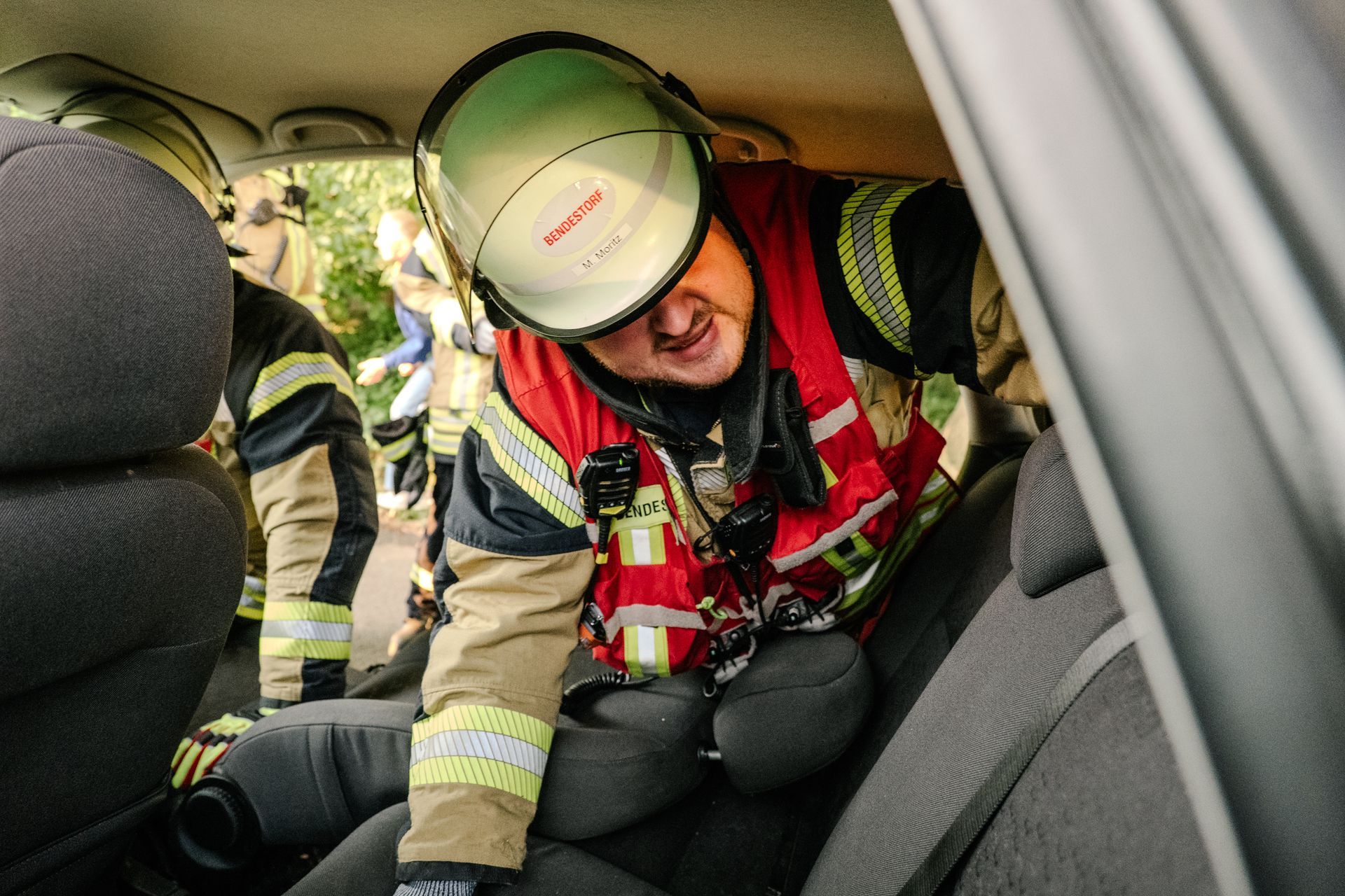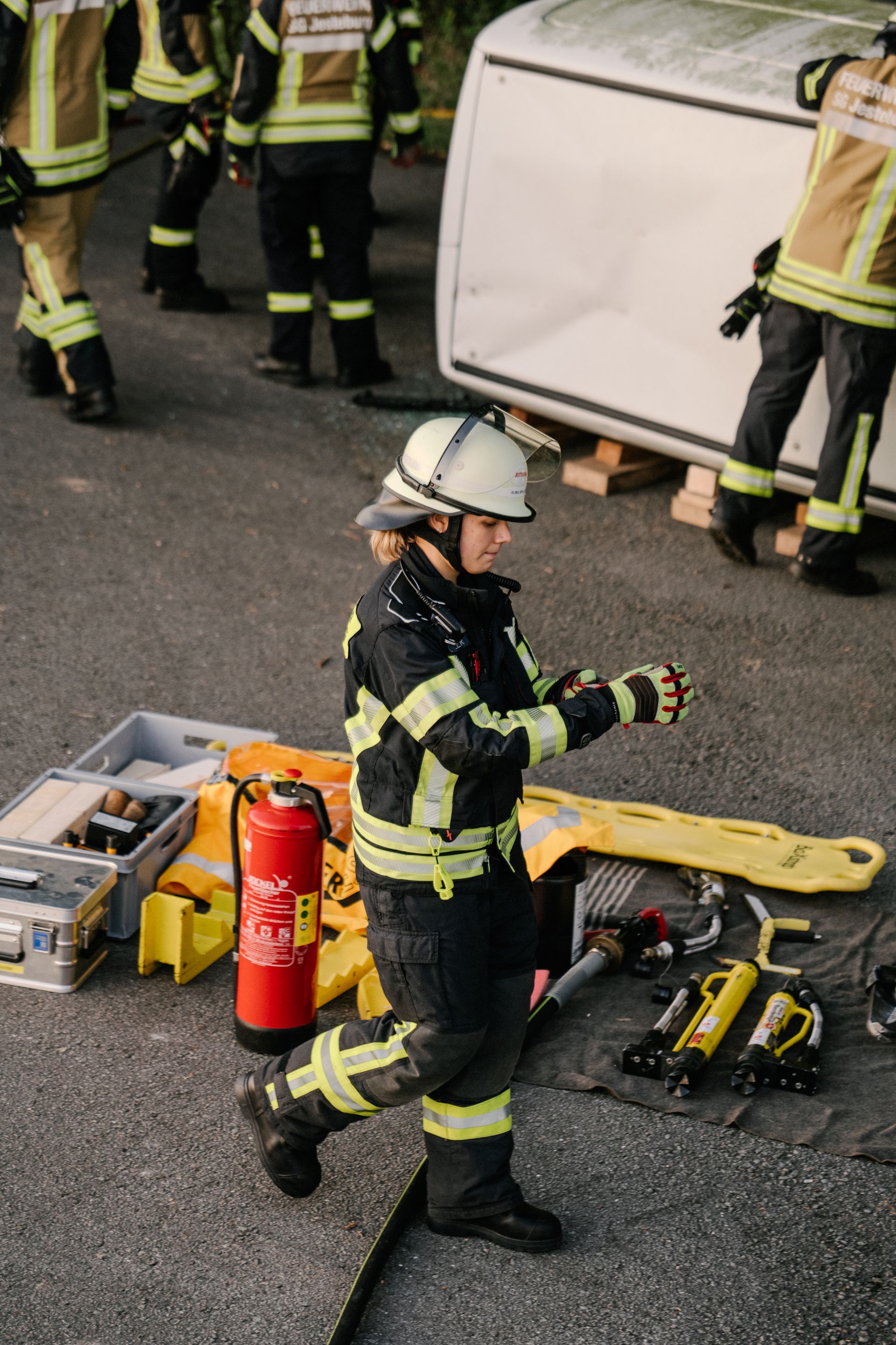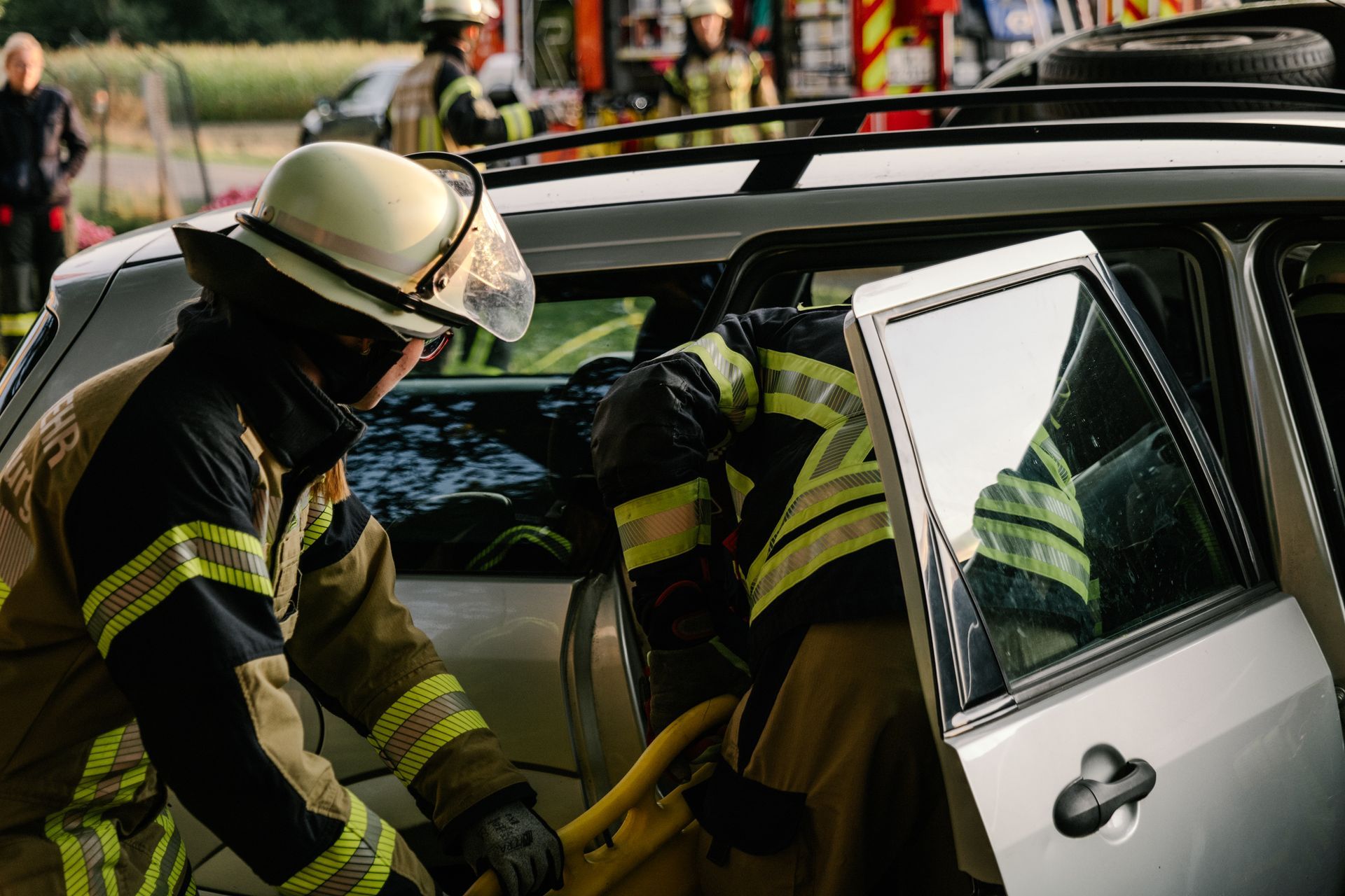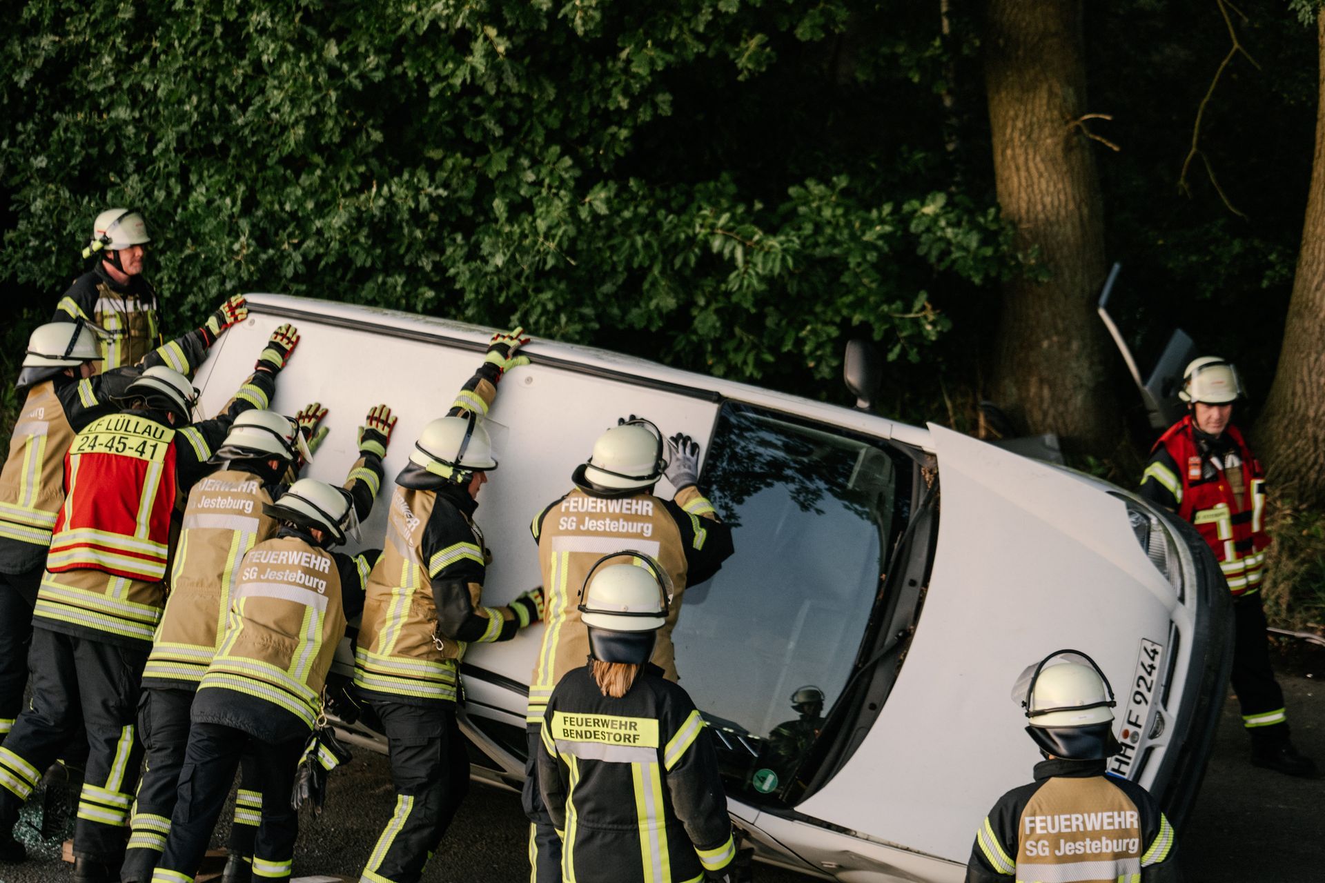 Nachdem diese Grundlagen für die Mannschaft durchgeführt waren, gab es eine Stärkung und die Führung wurde mehr gefordert. Nach einem Verkehrsunfall zweier PKW befand sich einer in Seitenlage. Vier Personen waren verletzt. Neben der technischen Rettung war die Ordnung des Raumes zentrales Element der Übung. Unter Leitung des Gemeindebrandmeisters konnte auch diese Übung erfolgreich absolviert werden. Im Anschluss bestand noch die Möglichkeit die PKW unter Anleitung der eingesetzten Gruppenführer weiter fachmännisch zu zerlegen.